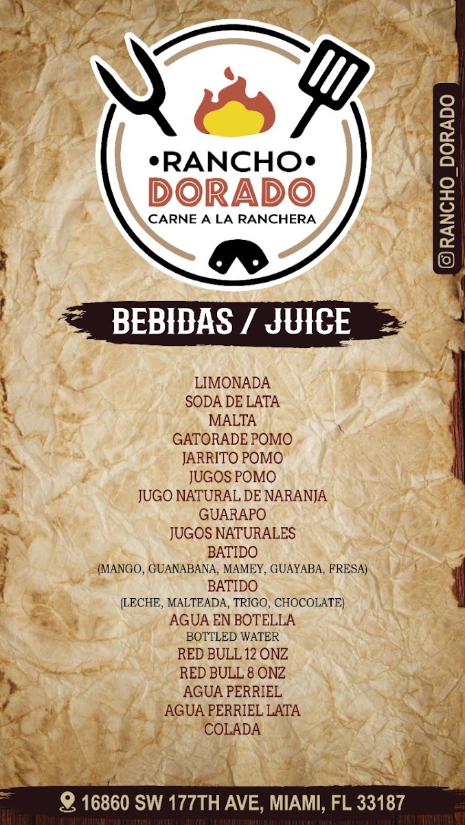 If you're in the mood for a mouthwatering meal in Miami, the Rancho Dorado Menu is sure to satisfy. Nestled at 16860 SW 177th Ave, this cozy spot brings the vibrant flavors of traditional and contemporary dishes to life. Whether you're craving something hearty like a perfectly grilled steak or lighter options like fresh seafood, the menu has something for everyone. The flavors are bold and fresh, with a focus on locally sourced ingredients that make every bite memorable.